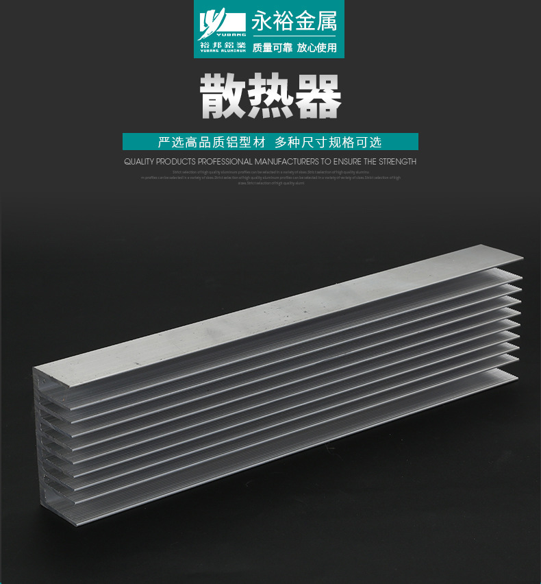 6063鋁型散熱器可進(jìn)行各種表面處理,花色品種多,而且無(wú)焊點(diǎn),裝飾性強(qiáng),美觀耐用,能滿足人們個(gè)性化要求,永裕金屬還可以加工噴砂、拉紋、拋光、表面陽(yáng)極氧化,硬質(zhì)氧化等等加工工藝,制造出更美觀的鋁型材散熱器。